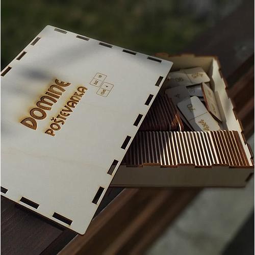 Družabna igra domine 8 podaljša igro, ker komplet vsebuje več kosov (domine do 8 pik) in je iz debeline 6 mm, kar omogoča postavitev domin.