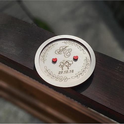 Blazinica za prstane velikosti 16x14,5 cm v natur barvi ali v barvah vajine poroke. Z možnostjo gravure.